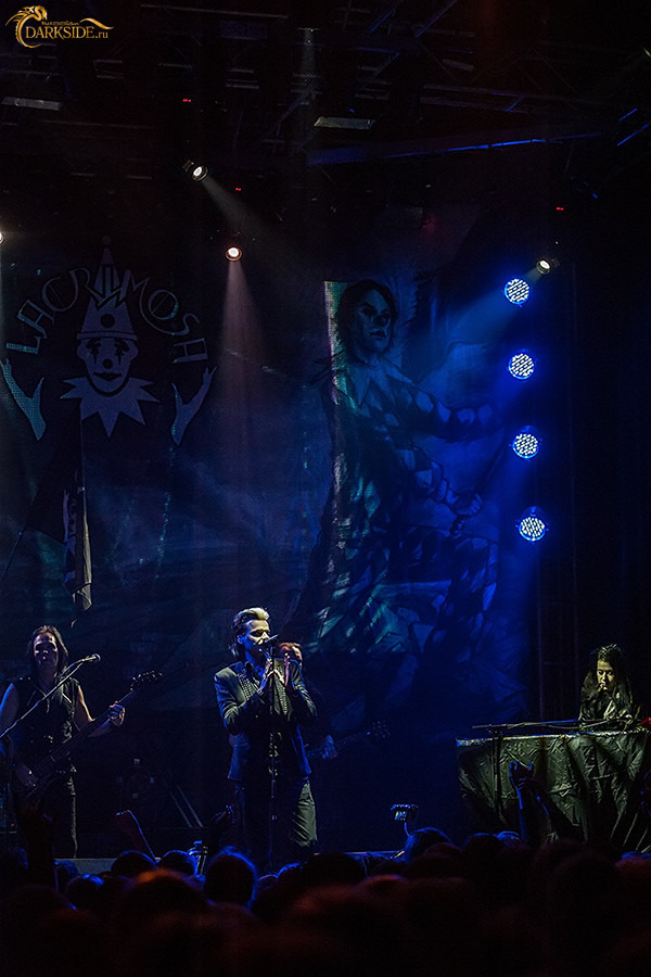 Для группы Lacrimosa уже стало традицией выступать по два раза в Москве в турне в поддержку очередного альбома. Не стал исключением и нынешний приезд в Россию этого интереснейшего коллектива. Этой весной мне удалось побывать на втором московском концерте, чему я очень благодарна небесам! Откровенно говоря, я не могу причислить себя к так называемой готической субкультуре, и ценю группу, скорее, за уникальность музыкального материала и постоянство творческого развития, ведь Тило Вольфф — талантливый композитор, сумевший гармонично сплести аскетичность дарквейва с роскошью симфонизма. Моя радость по поводу того, что я побываю на концерте „Лакри“, была совершенно искренней в силу совершенно разных причин. Однако основная – это, конечно, то, что мне своими глазами и ушами хотелось убедиться в том, что Lacrimosa великолепна не только в записи, но и даёт незабываемые живые выступления. Cразу могу сказать, что ничто не смогло испортить мне впечатления от концерта. Даже кошмарные условия зала КЗ „Москва“, который совершенно не приспособлен к тому, чтобы там можно было без ущерба для здоровья собрать всех многочисленных желающих (слишком неудобное фойе и почти полное отсутствие вентиляции, вследствие чего — неизбежная давка на входе и выходе, нехватка мест в гардеробе, воздух с такой концентрацией сигаретного дыма, о котором говорят «топор можно вешать»).