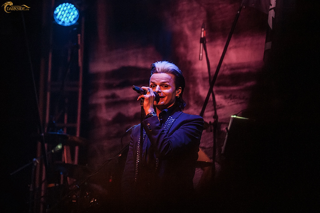 Тем не менее, организаторы заслуживают похвалы, потому что концерт начался рано, без опоздания: уже в начале восьмого зазвучало традиционное интро «Lacrimosa Theme», и поэтому около десяти вечера концерт закончился, что было очень удобно, учитывая московские расстояния. Вопреки ожиданиям, звук в зале оказался весьма достойным. Отчётливо и выразительно звучали гитарные партии и партии баса, не заглушая при этом вокальные откровения Тило и Анне. Прежде чем спеть дифирамбы этим двум звёздам, скажу, что басист группы Джей Пи также заслуживает самых высших похвал. Экспрессия, с которой он выдавал басовые соло, придала выступлению дополнительную изюминку. К сожалению, хуже было слышно клавишные партии и симфоническую составляющую музыки. Однако этот недостаток звучания с лихвой компенсировался поведением Тило и Анне на сцене. Безусловно, их артистичность и выразительность создаваемых ими образов уже давно стали своеобразной визитной карточкой группы. И на этот раз не обошлось без знаменитой жестикуляции Тило, когда он словно запускает бабочку в зал при помощи только лишь своей кисти. Настоящий театр мимики и жеста! На Анне была серебристая накидка, капюшон которой покрывал голову. В конце новой песни Анне исполнила танец, напоминающий старинный менуэт. Её движения вдруг стали размашистыми и плавными, поэтому её фигура напомнила мне летучую мышь в полёте. Очень выигрышный образ! Впрочем, во время исполнения «Apart» Анне сняла накидку и продемонстрировала тот самый корсет с маленькими серебристыми рукавчиками, в котором она снималась для фотосессии нового альбома. Тило же несколько напоминает Джека Скелингтона, главного персонажа из знаменитого мультфильма Тима Бёртона «Кошмар перед рождеством». Такой же высокий и элегантный, он заламывал руки в трагических жестах. Иногда он словно дирижировал толпой фэнов в партере, а порой склонялся со сцены и пел лично кому-то в первых рядах. Вся группа в целом и каждый музыкант в отдельности на сцене излучали энергию и участие. Кроме того, в этом турне Тило решил растолковать смысл некоторых новых песен и сделал это с присущей ему театральностью. Так, пришедшие на концерт смогли увидеть два мини-спектакля с единственным актёром в главной роли. Тило рассказал две истории, которые предварили исполнение песен «Irdendein Arsch ist immer Unterweg» и «Revolution». Перед первой песней Тило жестами изобразил, что он безмятежно счастлив и произнёс примерно следующее: «Бывают в жизни моменты, когда вроде бы всё получается и всё хорошо, однако всегда находится тот, кто будет стараться навредить вам, чья беспокойная задница не даст вам в полной мере насладиться успехом». Вероятно, текст этой песни - аналог русского выражения «добавить ложку дёгтя в бочку мёда». Перед «Revolution» Герр Вольфф и вовсе произнёс весьма длительную, воспитательную, «почти евангельскую» речь про вино и воду. Смысл её сводился к тому, что «нужно всегда понимать, что мы несём ответственность за то, что с нами случается». Тило Вольфф привёл в пример историю с молодожёнами, которые позвали на свою свадьбу друзей, но были так бедны, что у них не было денег, чтобы купить вина. И тогда они сказали своим друзьям: «Принесите вина, кто сколько сможет, и мы сольём его вместе, и будет у нас, что выпить». Однако после того, как друзья собрались и стали праздновать, оказалось, 