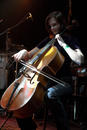 По сравнению с ноябрьским концертом немного изменился состав – поменялась флейтистка и появился еще один мужчина за там-тамами. Размещение исполнителей по сцене осталось примерно то же, только клавишница, теперь уже "девочка в белом", и невероятно печальный человек с пятиструнной бас-гитарой (он на этот раз был в вязаной шапочке - тайный поклонник Mesh, не иначе) поменялись местами, да флейтистку с пюпитром выдвинули на самый край сцены, в ближний правый угол. Маленькая скрипачка нарядилась в что-то вроде короткого балахона и встала точно за Пулатовой, так что весь концерт на меня из-за плеча последней смотрела мрачная голова в темном капюшоне. Два же основных действующих лица программы практически не изменились - синтезатор, гитара, бубен, нога на ногу, "большое спасибо". Разве что одежда повычурнее. Праздники, как никак.