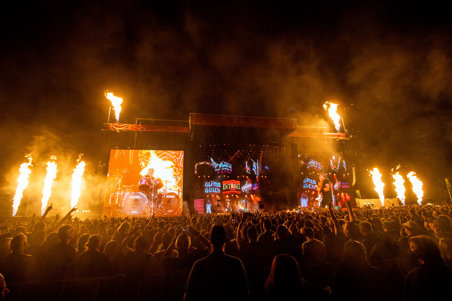 Whiplash (Drums rose up from beneath the "bridge" of stage that extended into the crowd at the song's start.)
