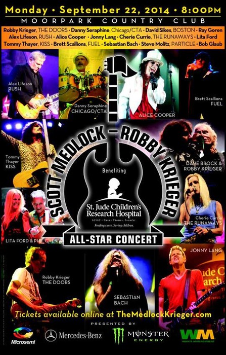 Alex Lifeson (RUSH), Alice Cooper, Tommy Thayer (KISS), Lita Ford, Sebastian Bach (SKID ROW) и прочие музыканты приняли участие в благотворительном шоу, которое устроили Scott Medlock и Robby Krieger (THE DOORS), проходившем 22 сентября в Moorpark Country Club, Moorpark, California.